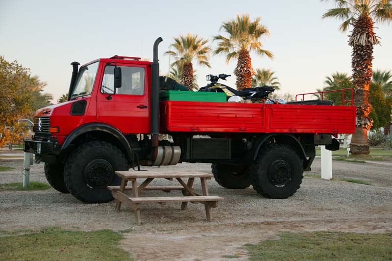 I departed Celaya on Saturday midnight, after passing Gauadalajra going toward Puerto Vallarta we got pulled over, we lost the rear license plate, it was not properly bolted, gave explanation to the officer, showed other documents and was let go. We had to stop later to fix the front license. We were doing 89.2 kph steady at 2450 governed rpm´s, on a looooong downgrade we did 134 kph checked by GPS, on neutral, of course, we even went on neutral like for 7-8 minutes on another downgrade going toward the beach. That terrain is very hilly, going up and down 3,000 at a time. Our first tank lasted 740 km, at a good 5 km/l (11.1 mpg). Then we had an air leak, yes, from one of all the plastic tubing lines that we had to replace thanks to my good idea of washing "sparkling clean" the truck with the high pressure water washer. It puncture almost every line. So, one of the line broke loose from the fitting, we stopped and notice that the gear box was steaming from the incoming shaft from the engine. We just stood there. We started stopping people so they could notify the police to send a wrecker, then a patrol arrived with 3 policemen armed with UZI´s, they stayed there until we left 5 hours later, "marihuanero" country they said, you can be assaulted here for sure, so they baby-sited us. The first wrecker arrived, not the right type so then they requested another one, a wheel-lift type. While waiting for the wrecker Elga and Werner from Germany (they were at Calico) stopped with us when they noticed the U-1450, they did not recognize me until I told them about my talibans and Adriana, so that means that instead of being Roberto now I need to reference myself to my children and wife.... to be continued.Well, if I write everything then I will have less to talk about during the trip.... let´s hope my truck makes it here.
