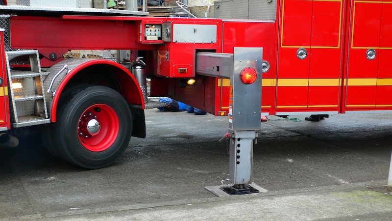 The ladder truck was the "real deal" with big outriggers to counter act the torque of having the ladder extended at an angle.