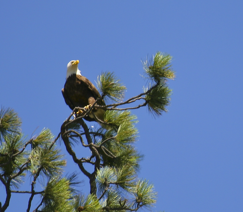 A way lucky shot of a bald eagle taken from the viewing vestibule of the train at 50 mph. I was stunned that the camera was able to focus and shoot at that speed, but that is what you pay for in a high-end camera.