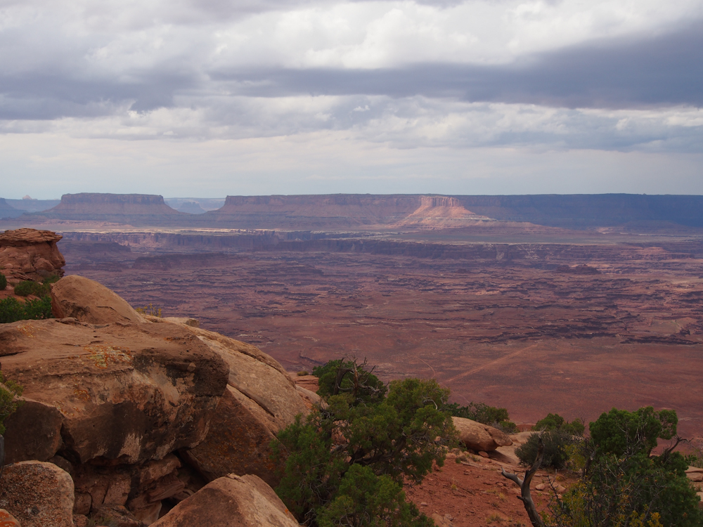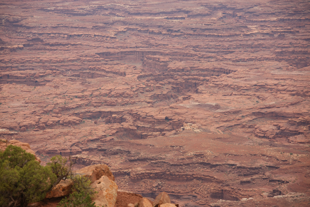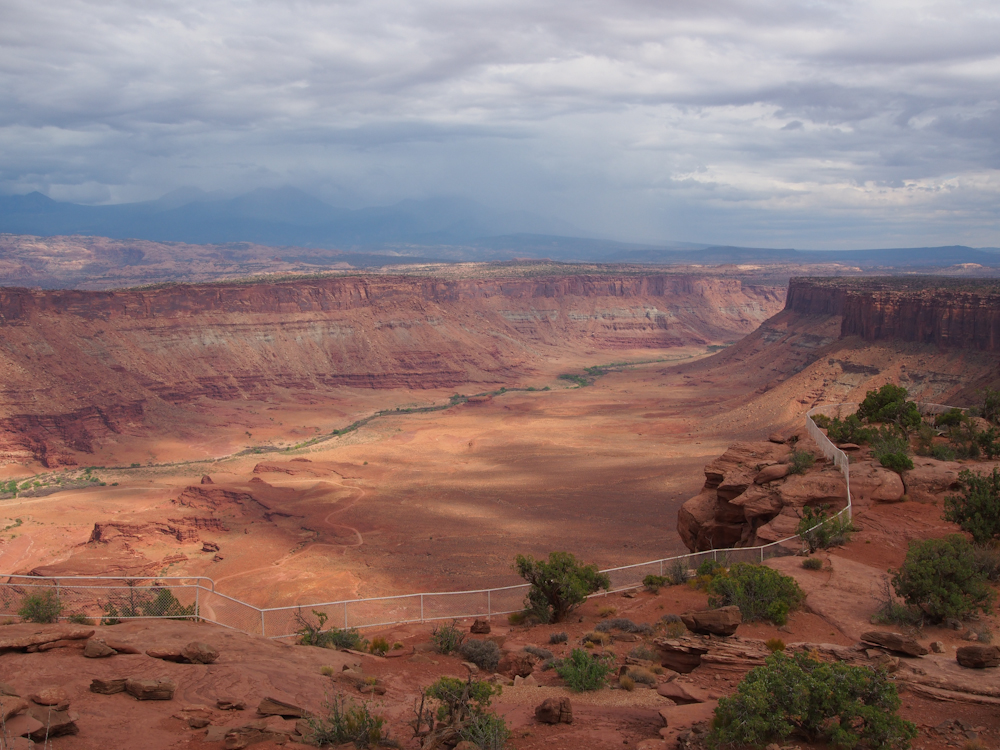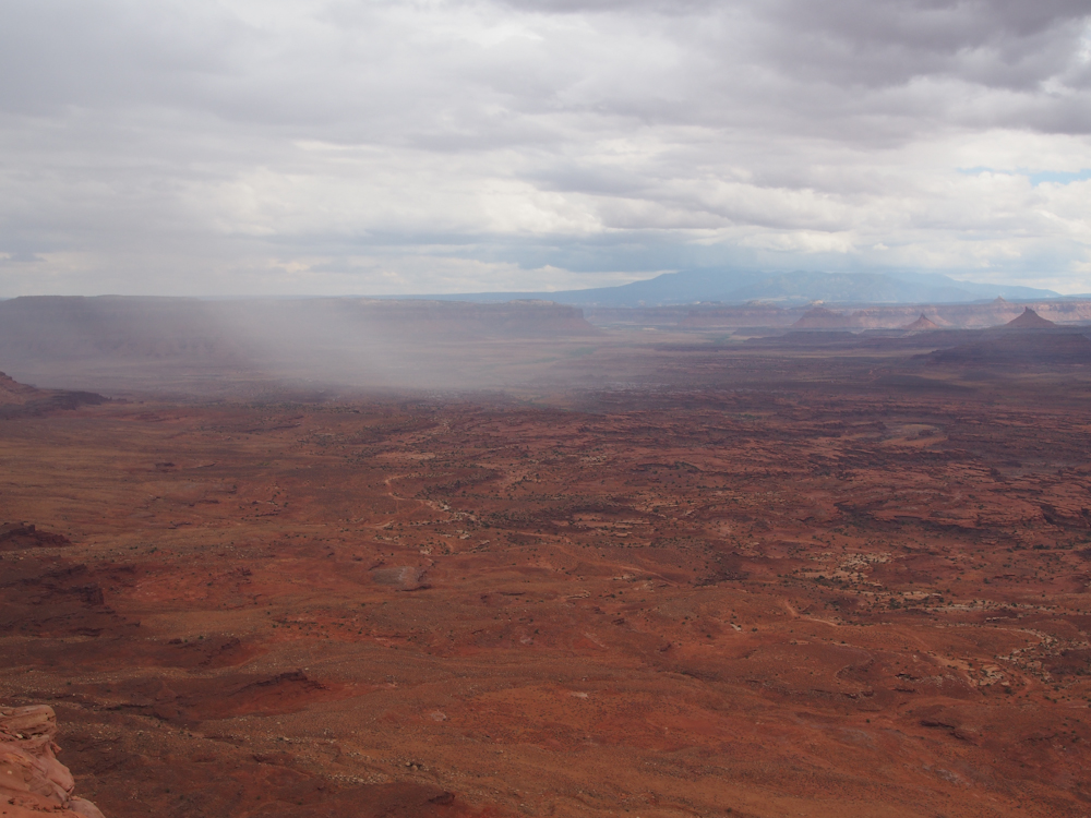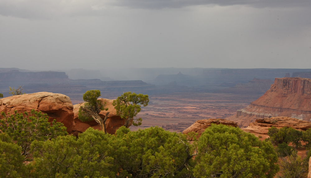 central area of Canyonlands Park, rain is lashing the inner