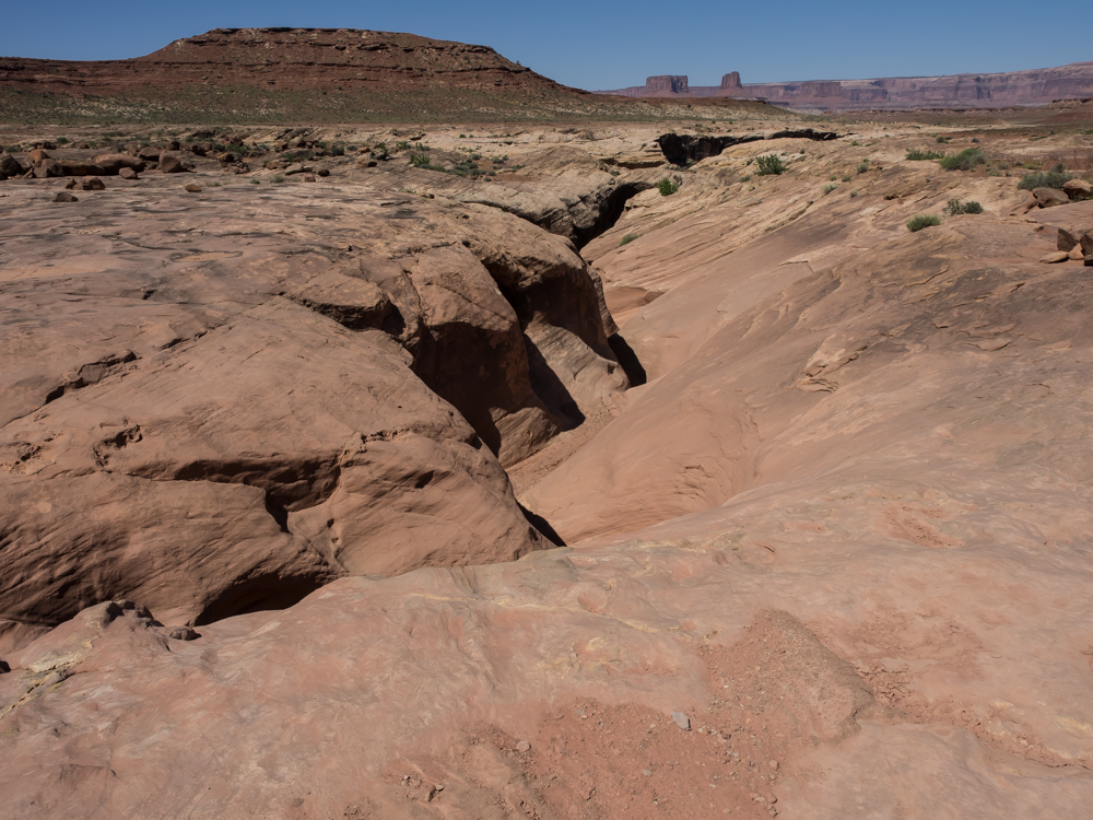 the sandstone. These trenches become huge canyons over the