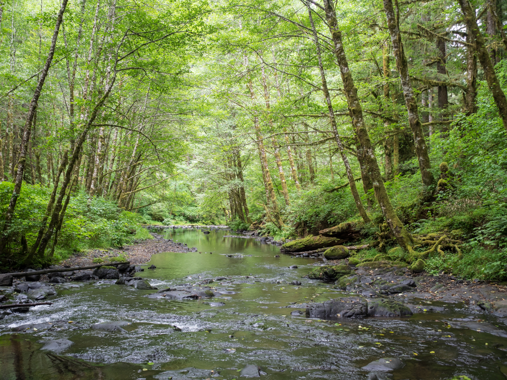 Creek is heavily forested and the scene looked like something