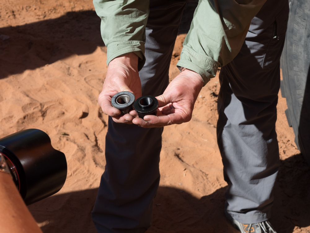 nuts". The skirt nut (black) has a flange that fits tightly into the
