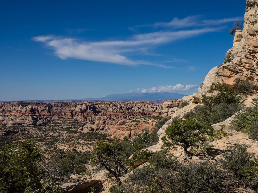 We began our descent into Beef Basin. The exposed formations in the center of the photo are part of Salt Canyon.