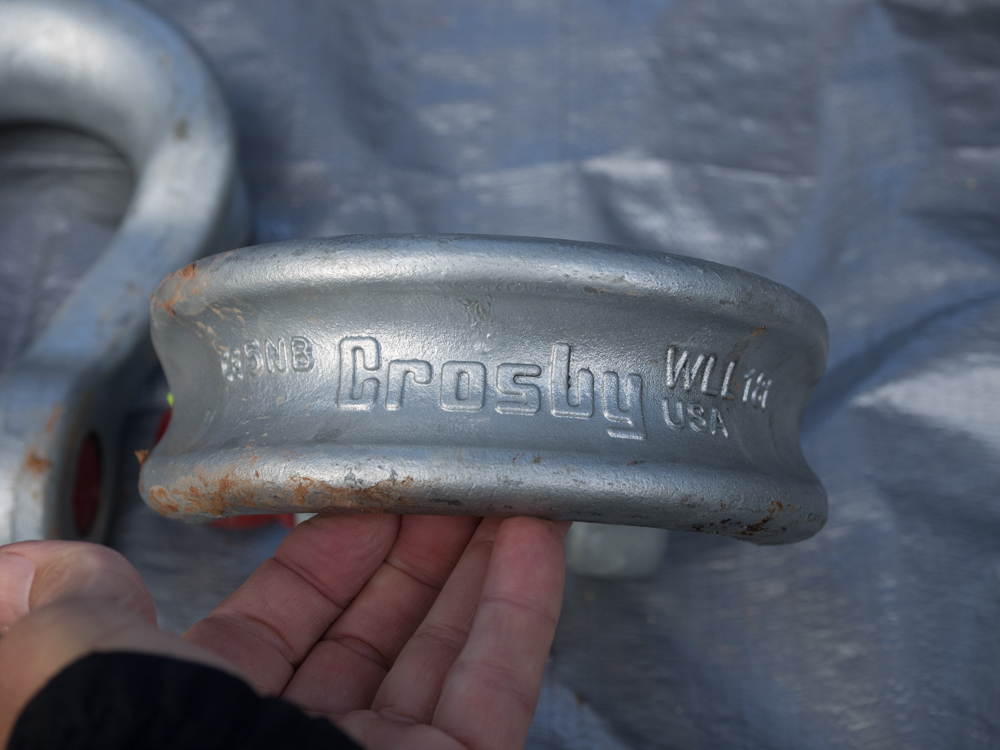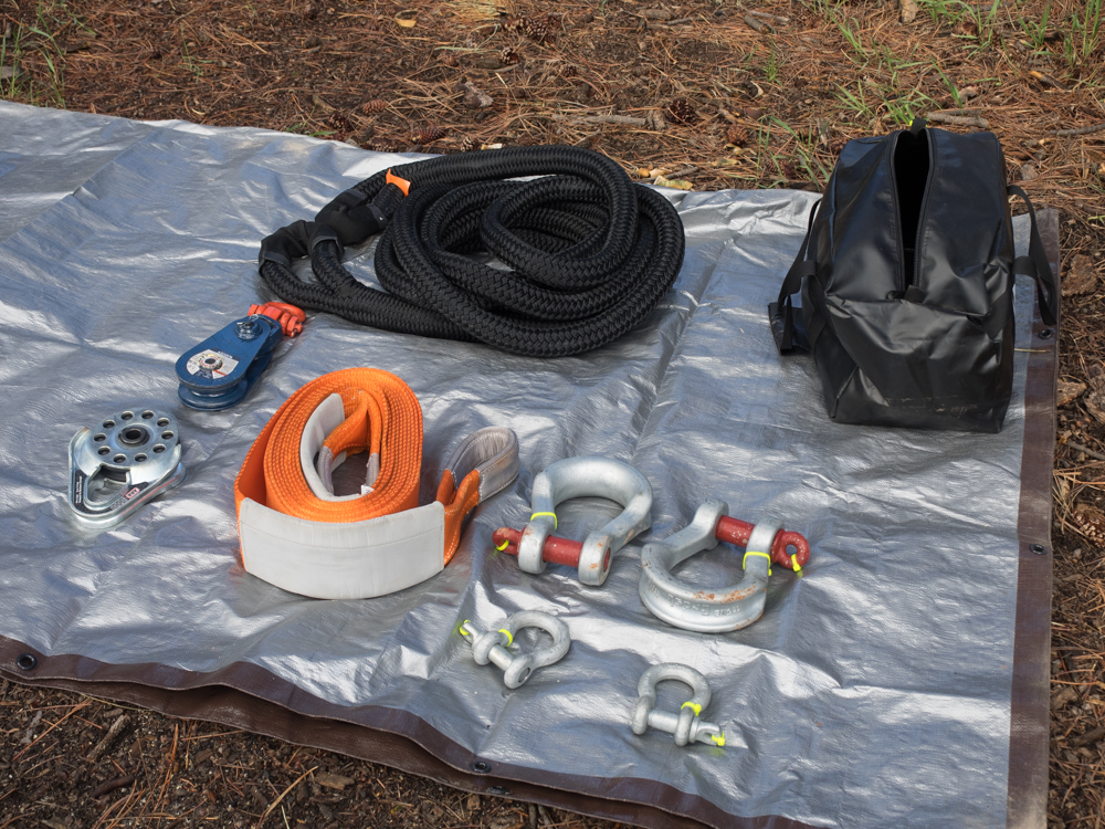 ropes, straps, safety rated shackles and pulleys for wire rope.
