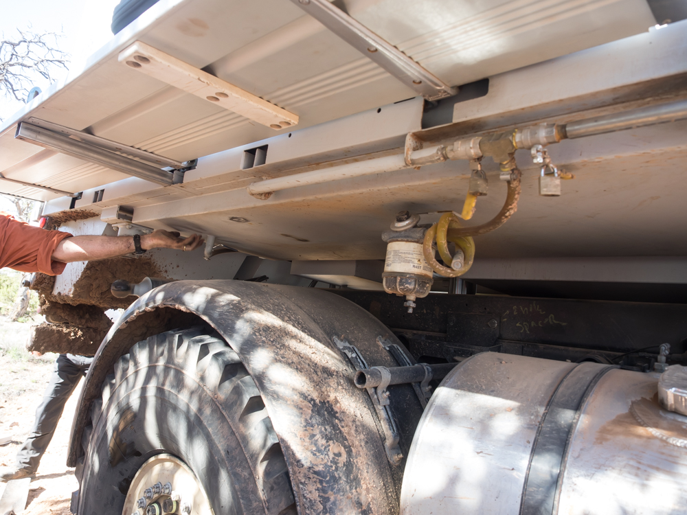 built into the truck frame. He can carry 150 gallons of