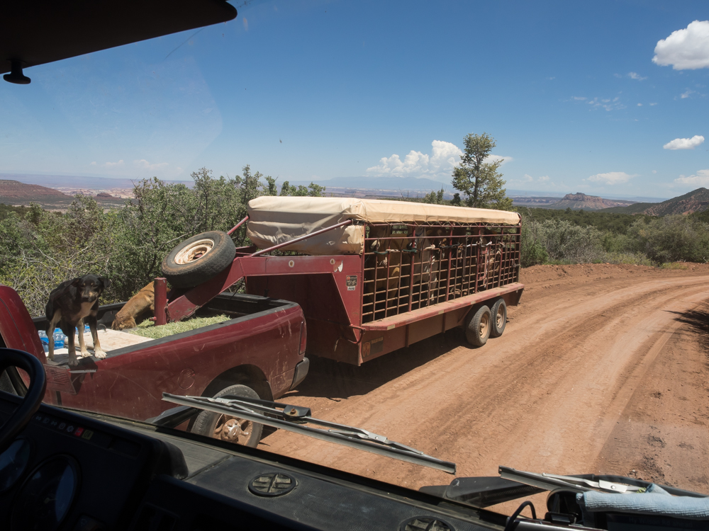 Elk Ridge, we passed this cowboy with dogs and a group of horses