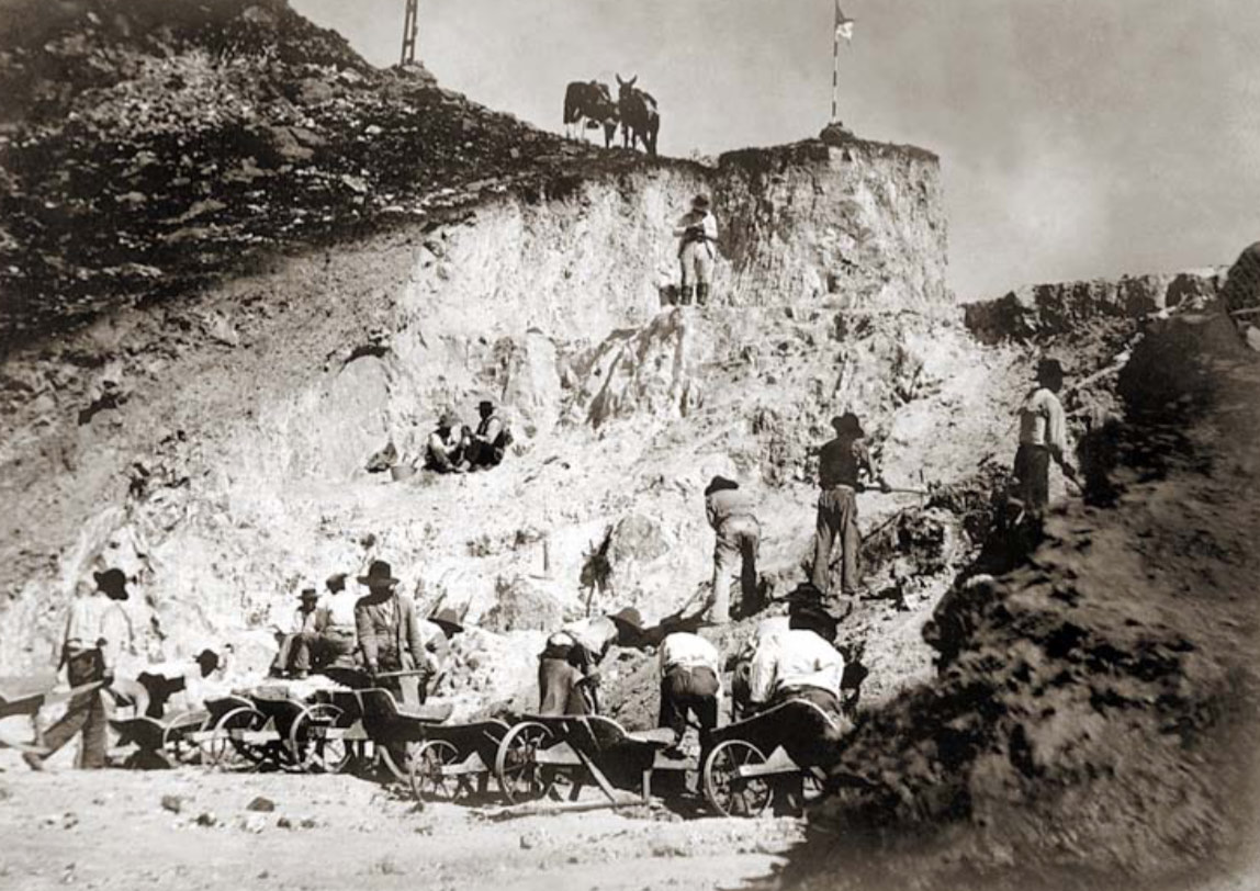 the old-fashioned way: pick, shovel and wheelbarrows.