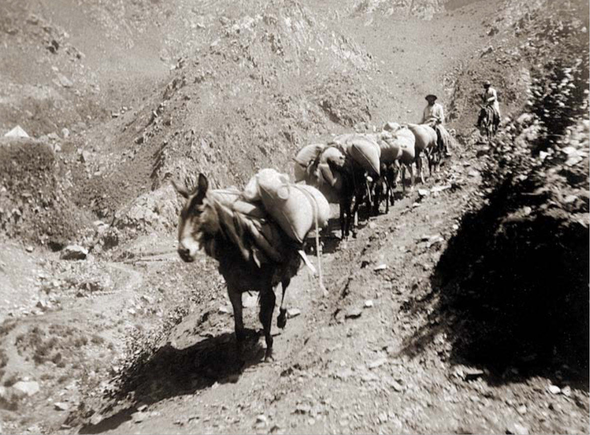 was established and trains of mules carried supplies and
