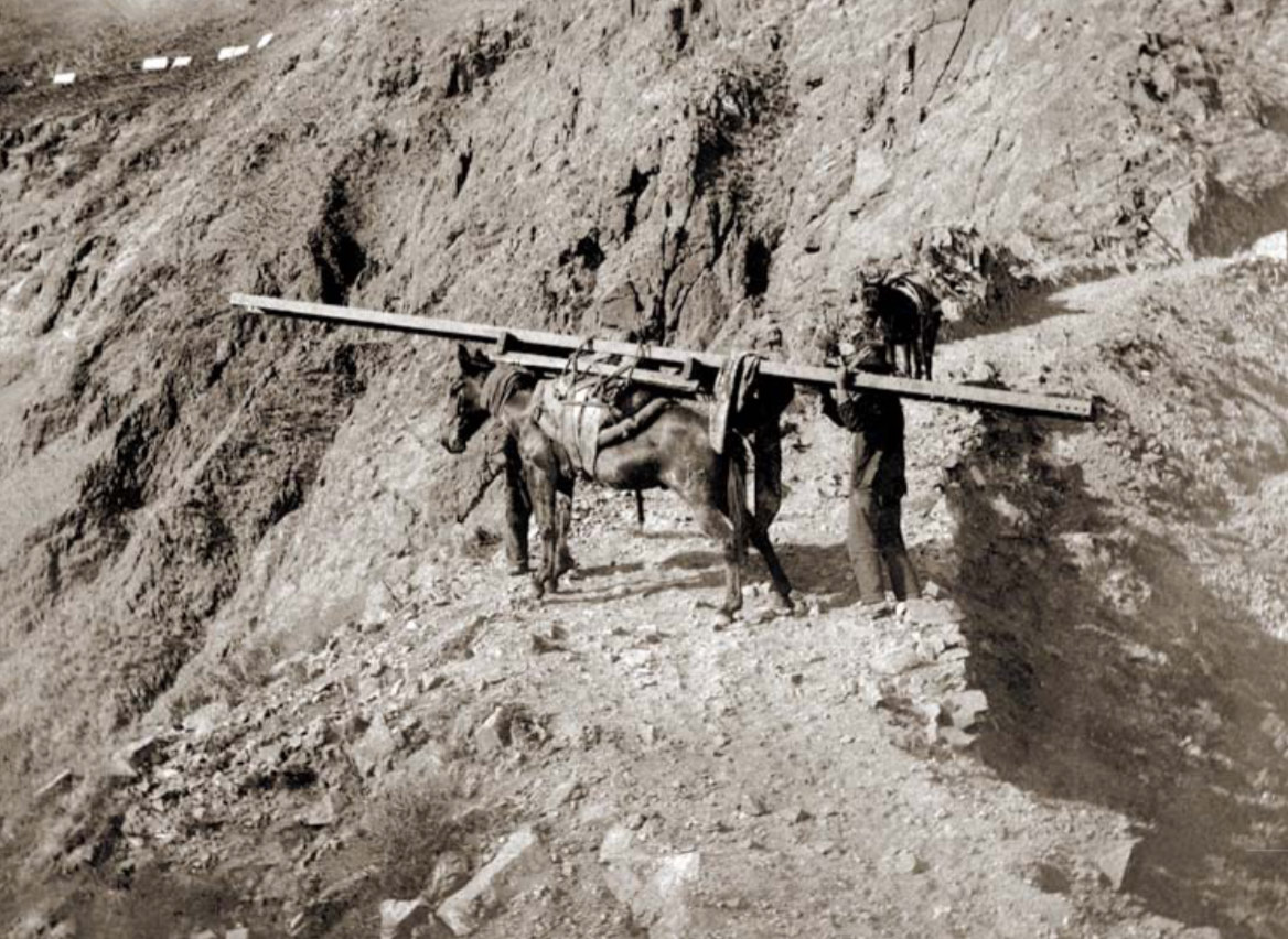 Mules were used to carry heavy loads. The really heavy