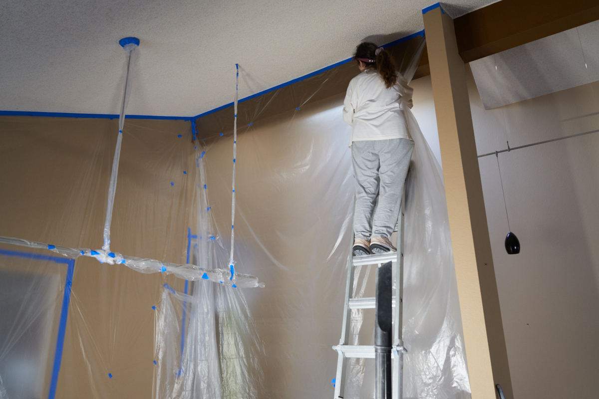 cloaked every wall with painter's plastic. As can be seen