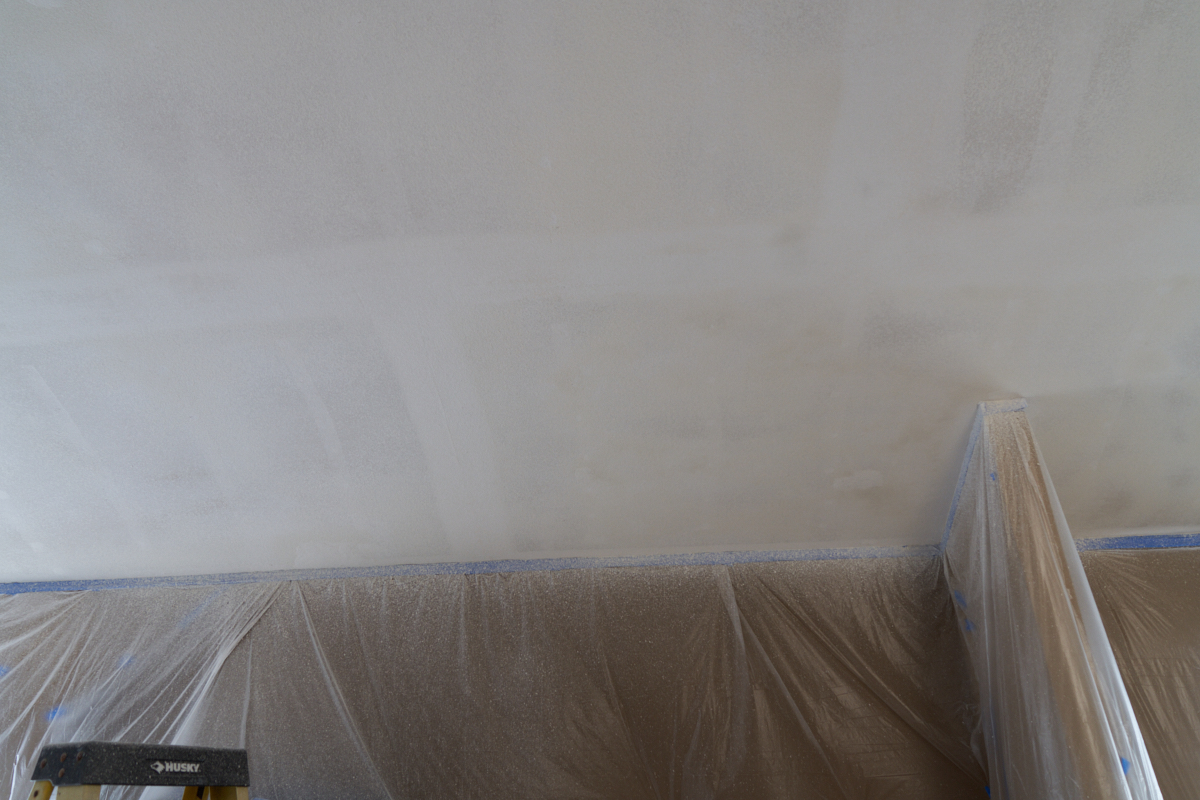 were ready to apply the drywall texture. Above, the bare