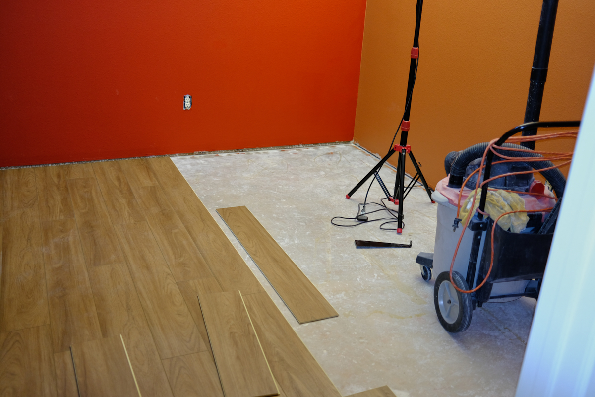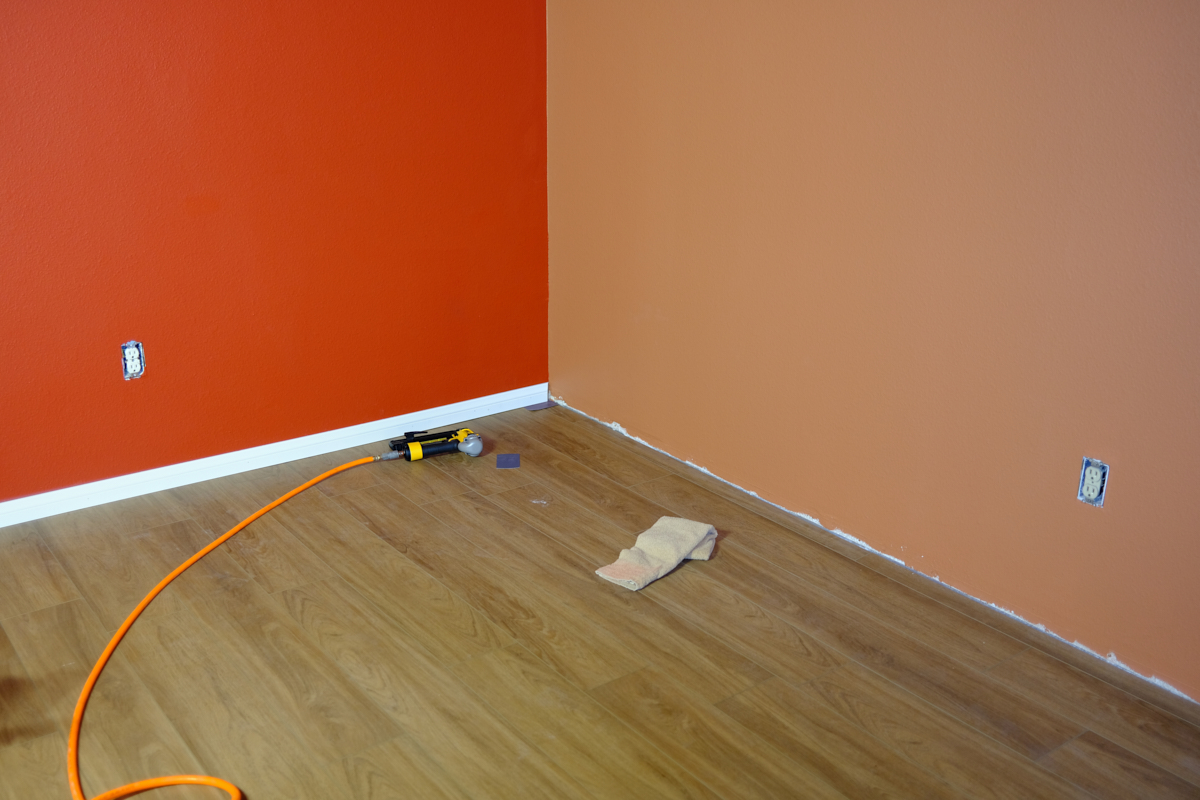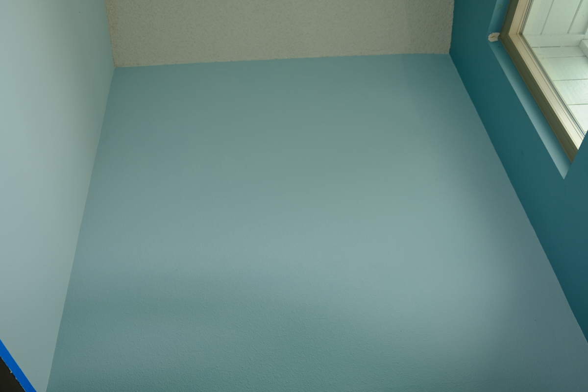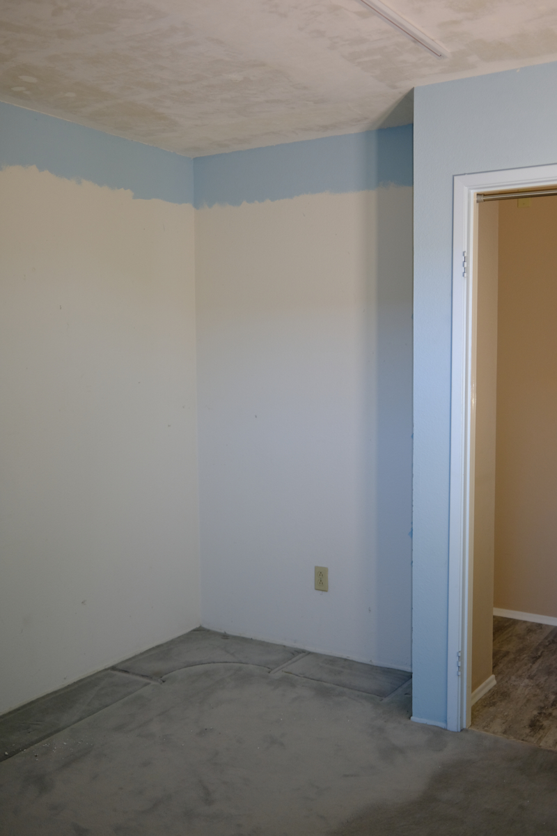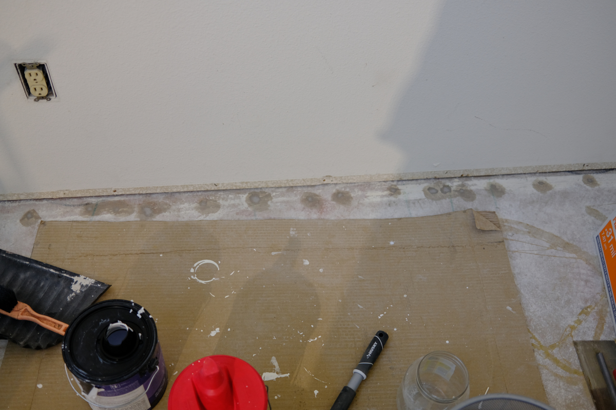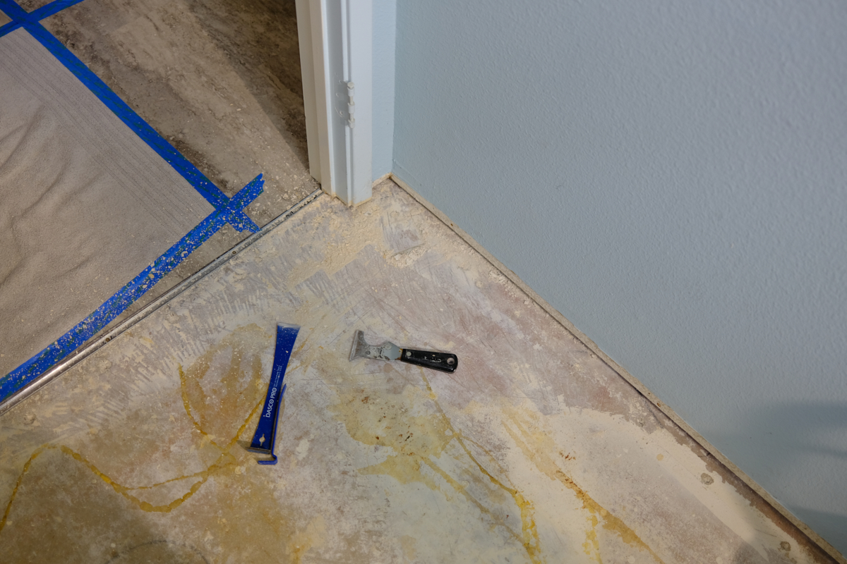 revealing bare concrete, albeit with glue, paint and drywall mud