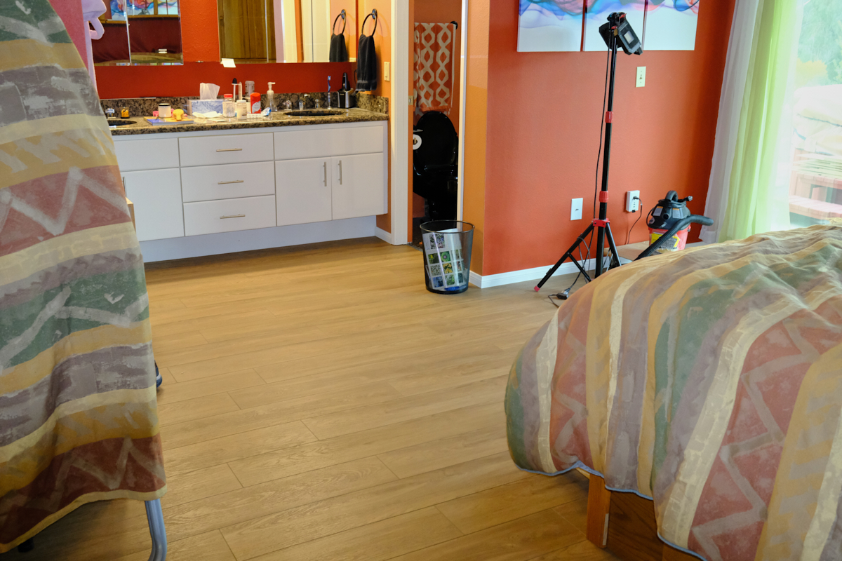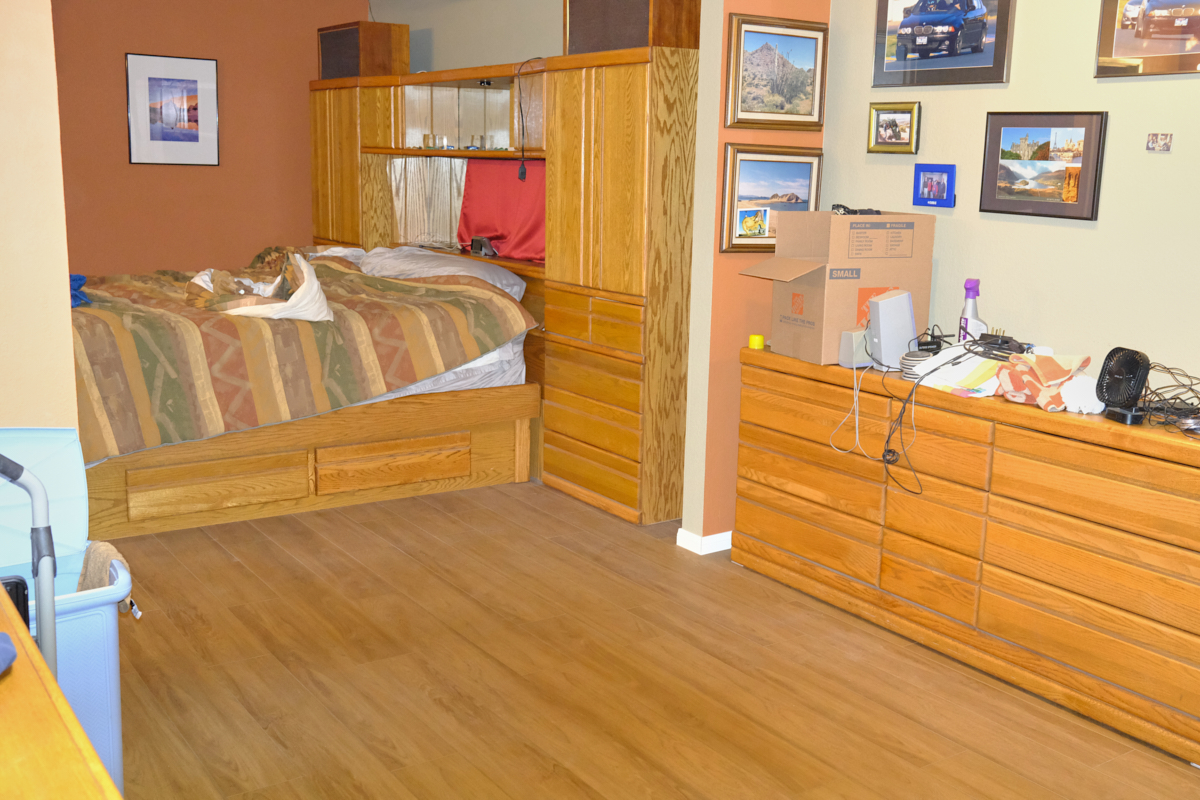 transition between the bedroom and sink area was removed.