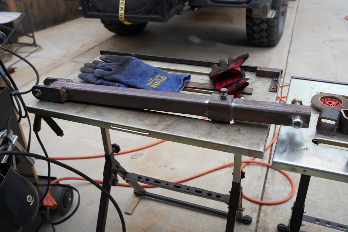 Two weld-on braces were needed for the next box: one fore and