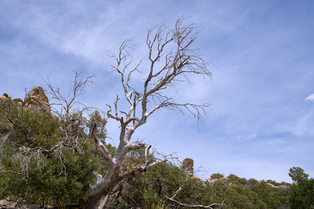 The bare tree above was one of the victims of a recent fire.