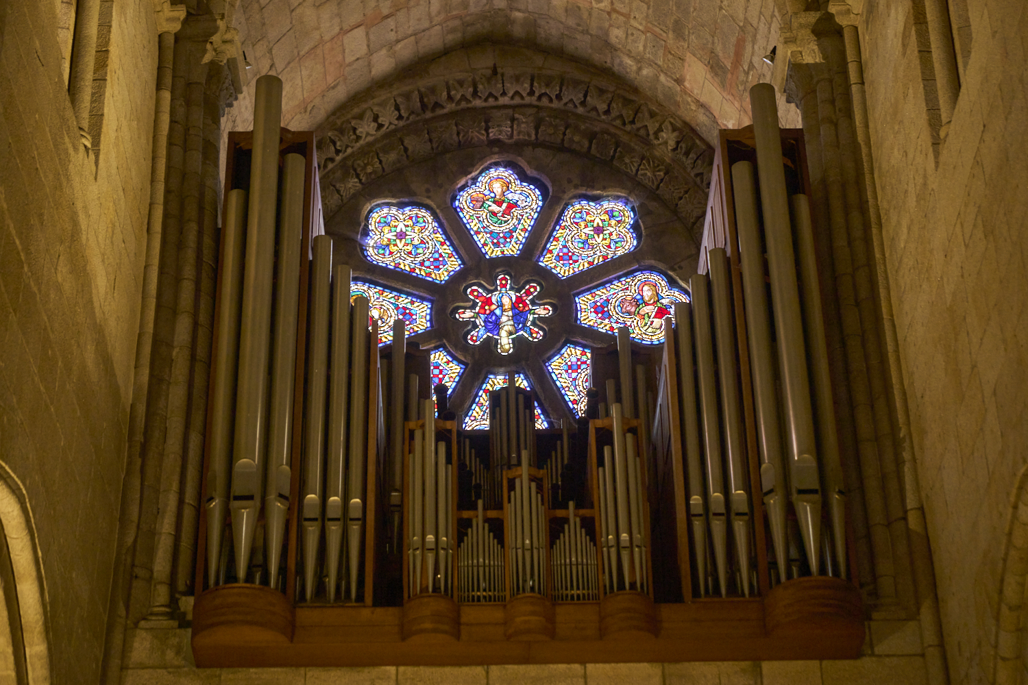 above was the organ and its huge pipes in front of a multi-pane