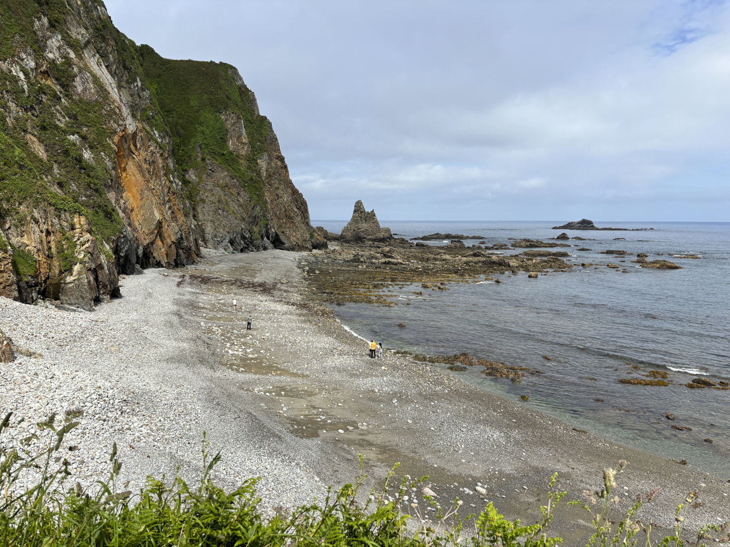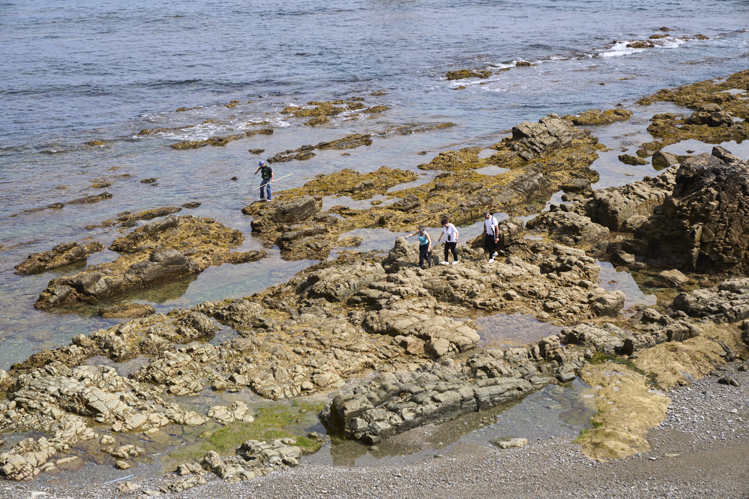 tide has exposed a large rocky area in the tidal zone.