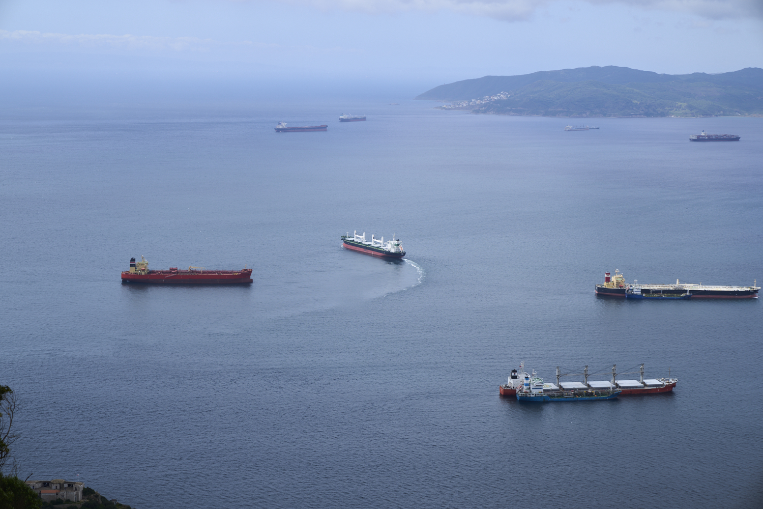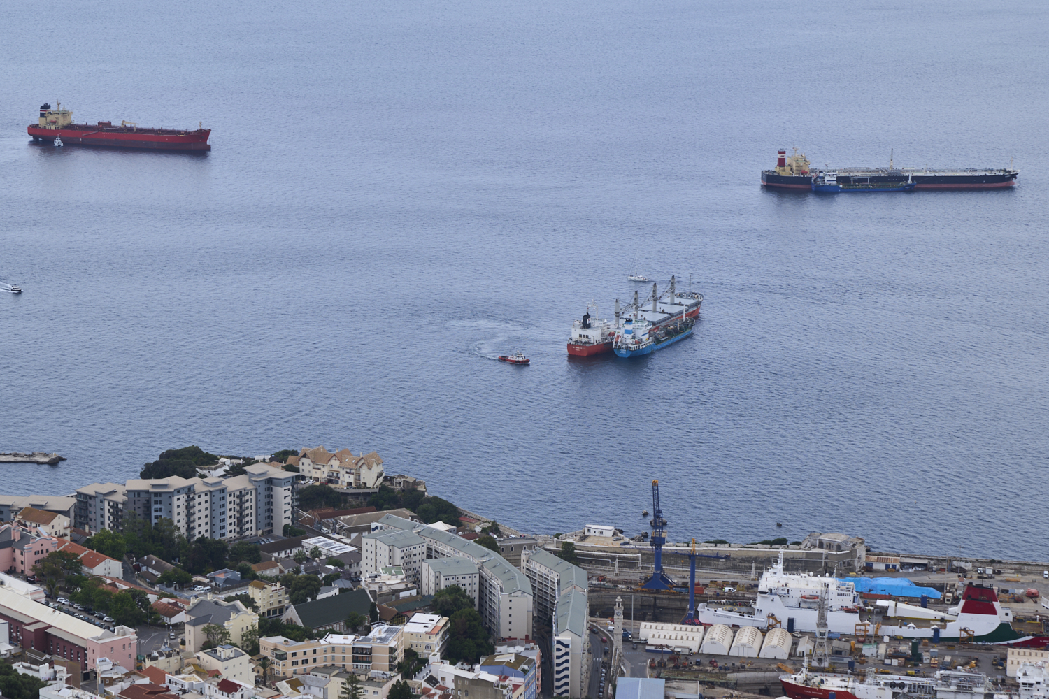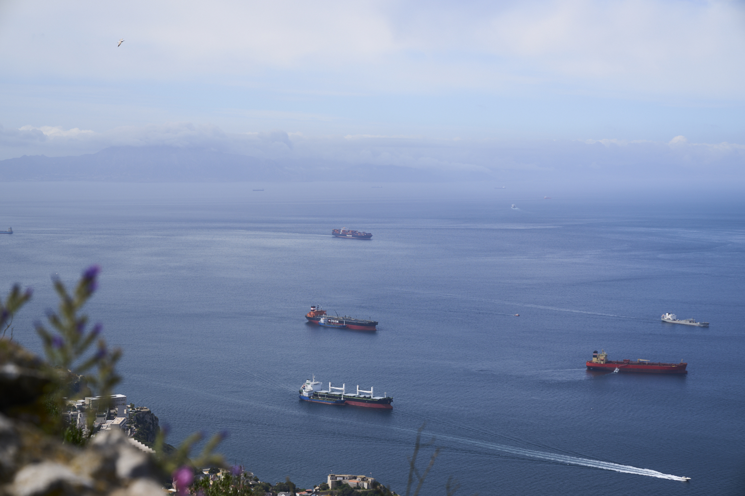 Gibraltar/Algeciras harbor. Visible in the distance in the