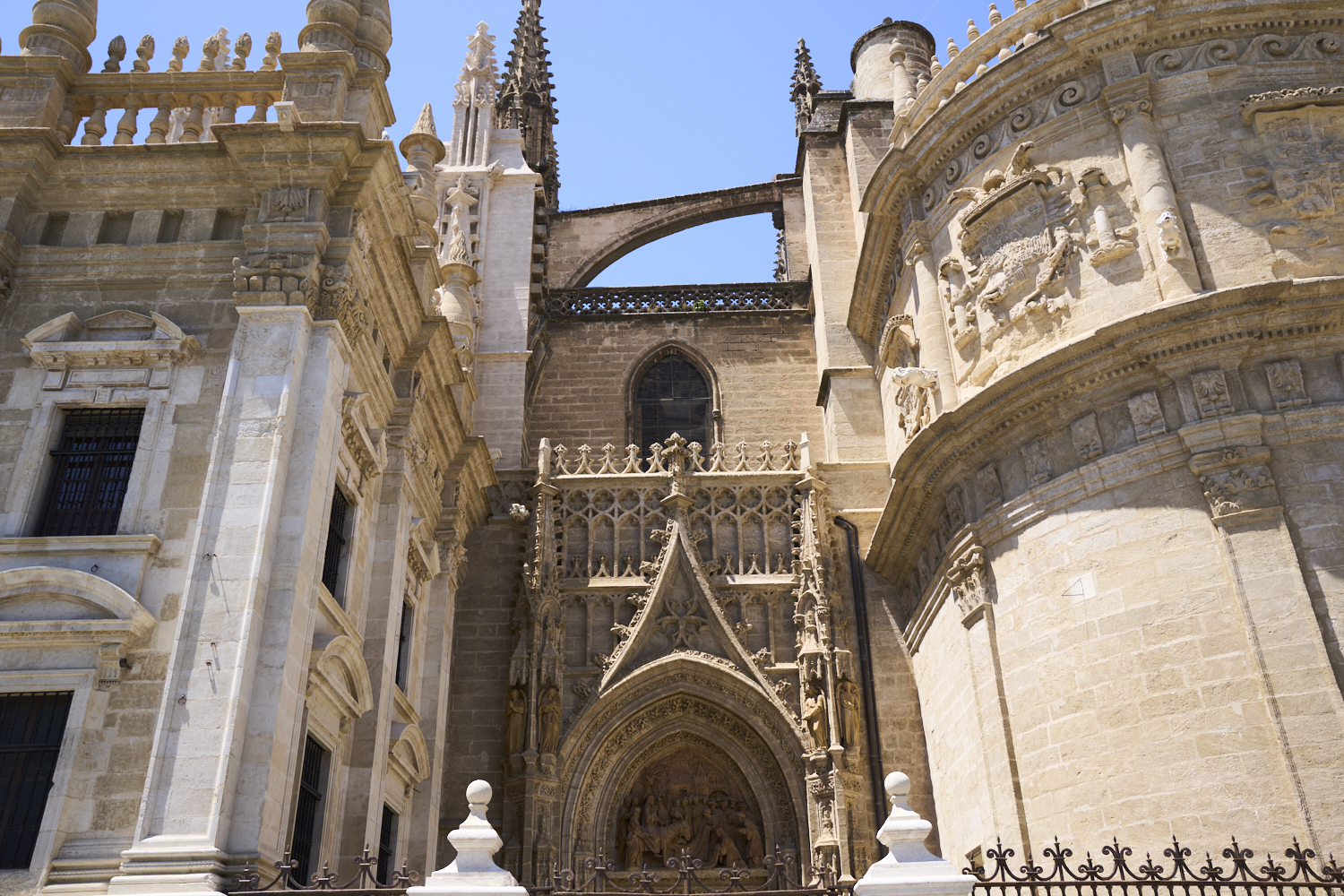 ornate carvings above the portals are clearly Moorish.
