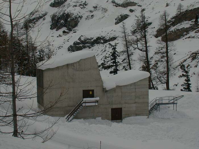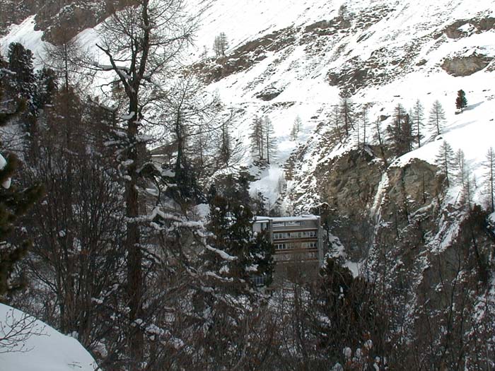 A lift house for some kind of tunnel entrance way up the opposite side of the canyon.