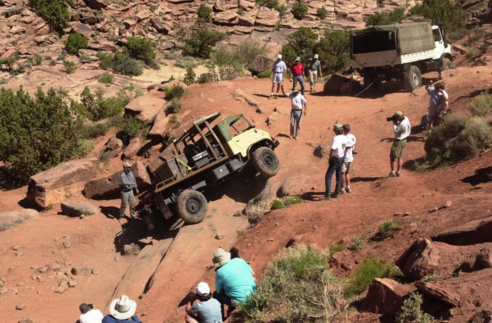 Rob Pickering tries the classic route, but failed. The jeepers try to power their way up this and sometimes take a slow running start.
