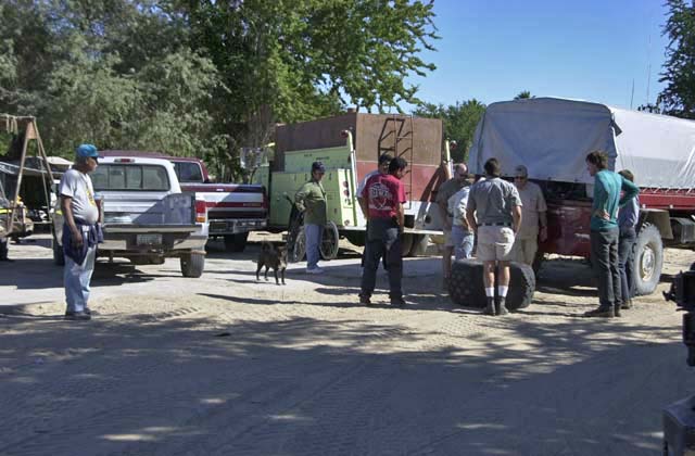 When I returned from my morning "nature walk", I discovered the balance of the team hard at work - seating the bead on my front tire. It seems in the drunken stupor of the night before we (more correctly I ) had forgotten to fully air the tires, resulting in a de-bead at rest. This was getting quite old. Many thanks to the team for correcting the issue in my lengthy absence.