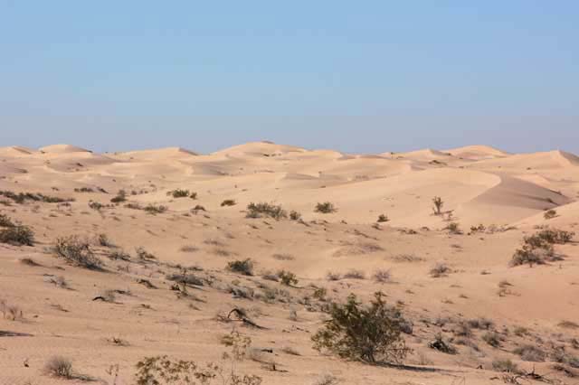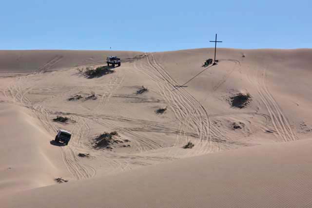 Below, you can see the scope of the bowl. Kathleen took this shot from partially across the bowl, looking back toward the trucks. The trucks are dwarfed by the size of the dunes.