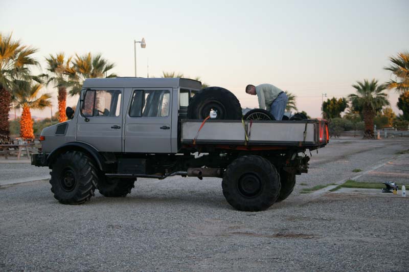 We got to Camp Gumbo with only minutes to spare before sundown. The Altar serves up good sunsets as well as high adventure. Other than getting stuck a few times, the day was mostly uneventful. The only major disaster was that a full box of wine broke in the back of my 1300, making a big mess and making the truck smell like a dive bar.
