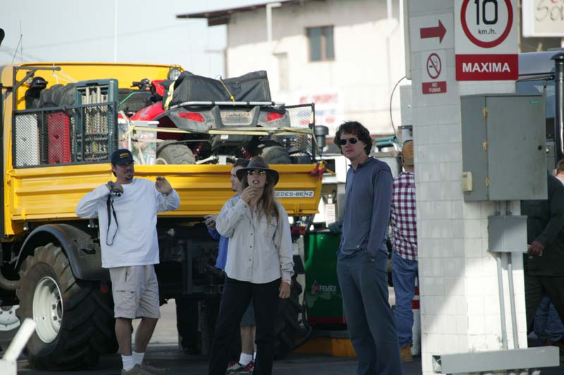 We crossed the border with minimal hassle and proceeded to get insurance. Some of us elected to get tacos at a stand next to the insurance office. Dan was unfortunate enough to have his tacos stolen when he turned his back on the food to pay the bill. I can only assume that whoever stole them needed them a whole lot more that Dan. Once we obtained insurance, we headed east on Mexican Highway 2 for diesel. Below, Kathleen considers the meaning of life at the Pemex.