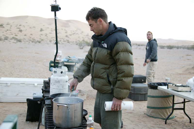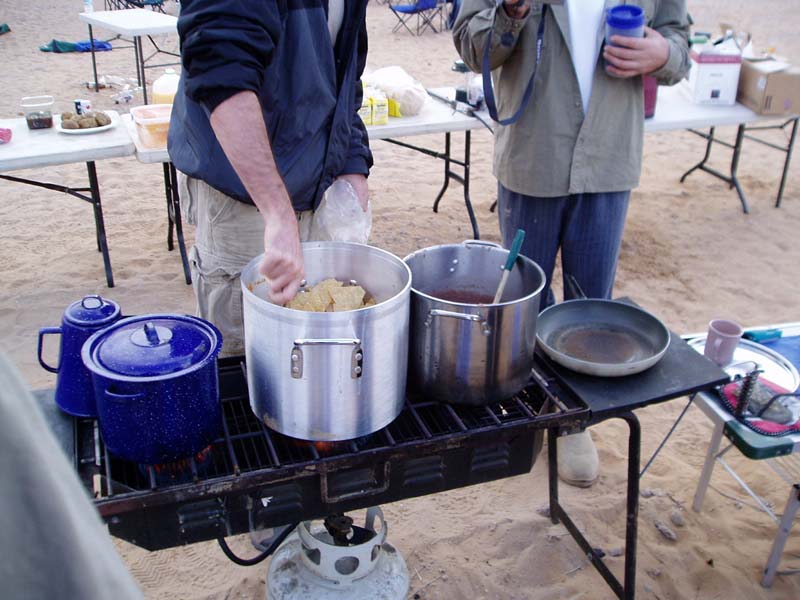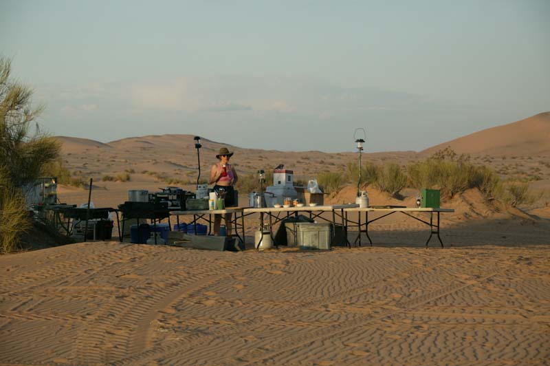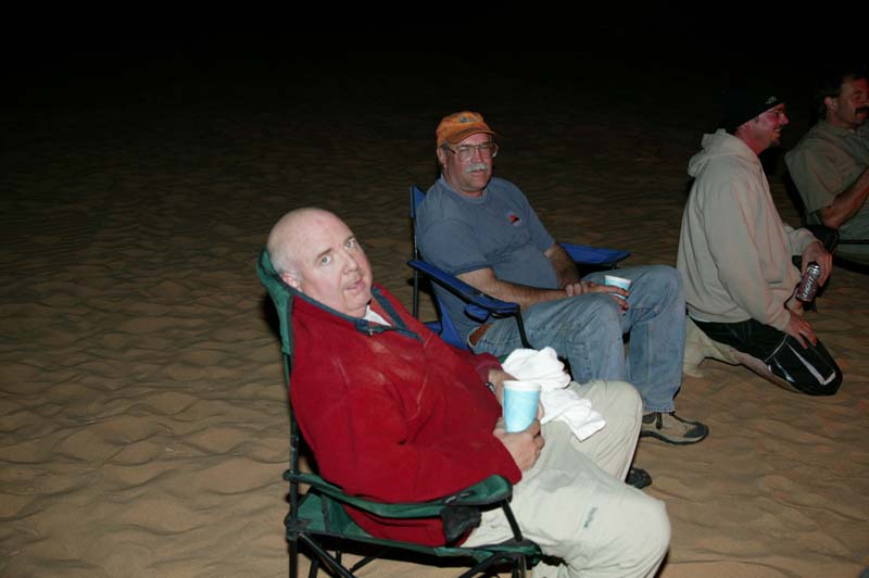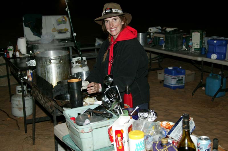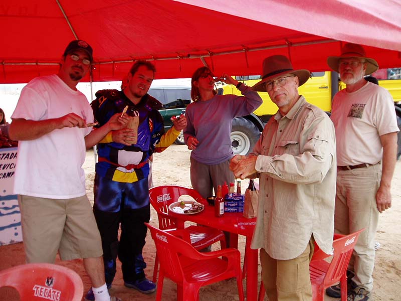 After fuel and getting clams, shrimp and tortillas, we headed back into the dunes. In town we purchased mass quantities of shrimp and clams. Below, Kathleen takes a photo of the team back in the dunes.