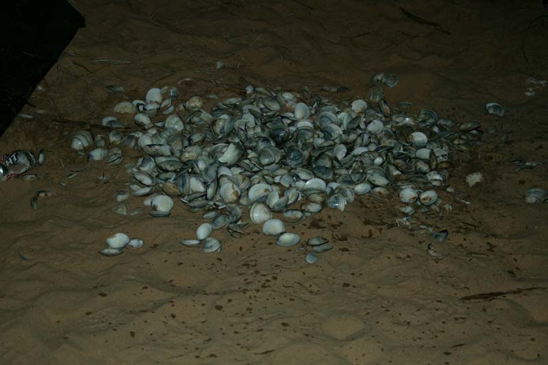 The aftermath of the clams before we buried them. There were like 20 dozen of the boogers, but they sure were tasty.