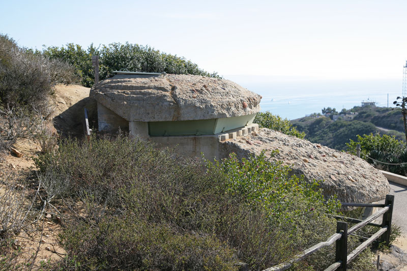 This is an observation pill box as part of Battery Ashburn on Point Loma. During WW1, the Navy had these observation points built into the cliffs and then camouflaged too look like regular rock formations. The observation ports are closed with steel plates now.