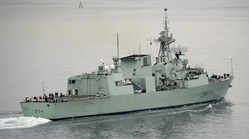 Canadian warship leaving Elliot Bay. Note the machine gun on the stern on the far left of the photo.