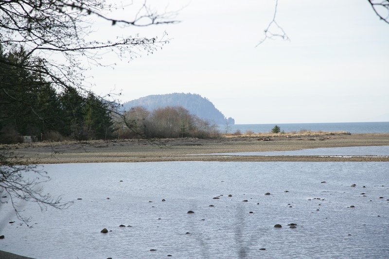 We rolled through at low tide. Here is a view looking north in Sequim Bay.