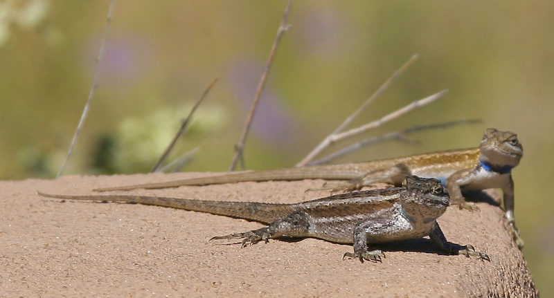 We had a great lunch at a place called Ben Michael's on Rio Grande Blvd in old town, then we headed to Petroglyph National Monument which is just to the west of town. As we arrived at the visitor's center, I caught this pair of lizards on the rock just outside the door. Note the bright blue band around the neck of the fellow on the right. They regarded us cautiously, but did not bolt.