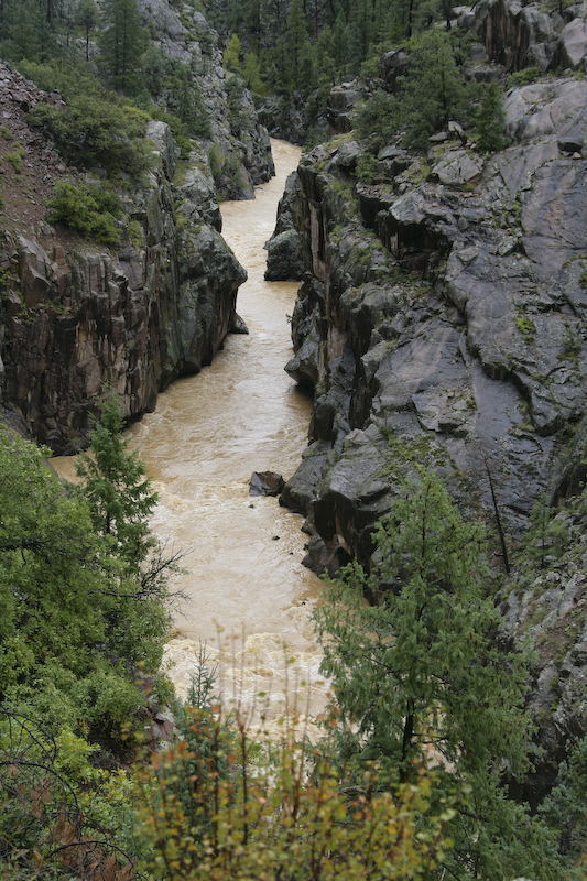 This section of the Animas river canyon was steep and narrow resulting in high water flows and strong currents.