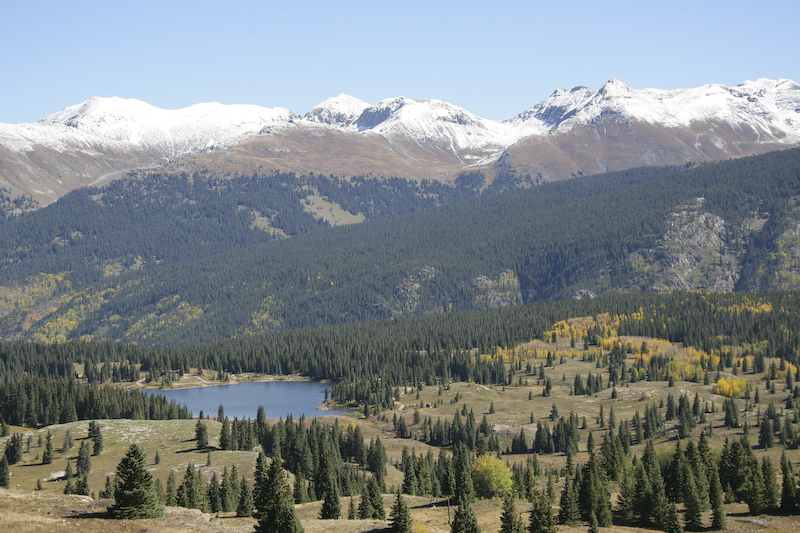 A view looking generally to the east from Molas Pass. Some snow had accumulated from the storm several days before.