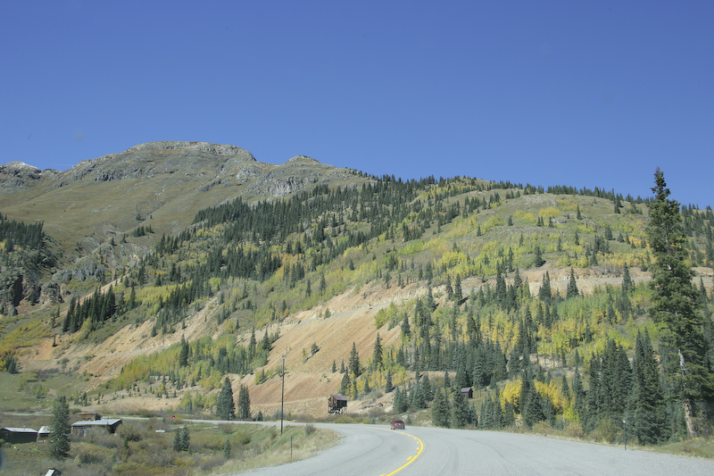 Approaching Red Mountain Pass, we rapidly gained elevation. With the elevation change, the colors of the trees became more vivid. We were here near the peak time which we were guessing was in a few days.