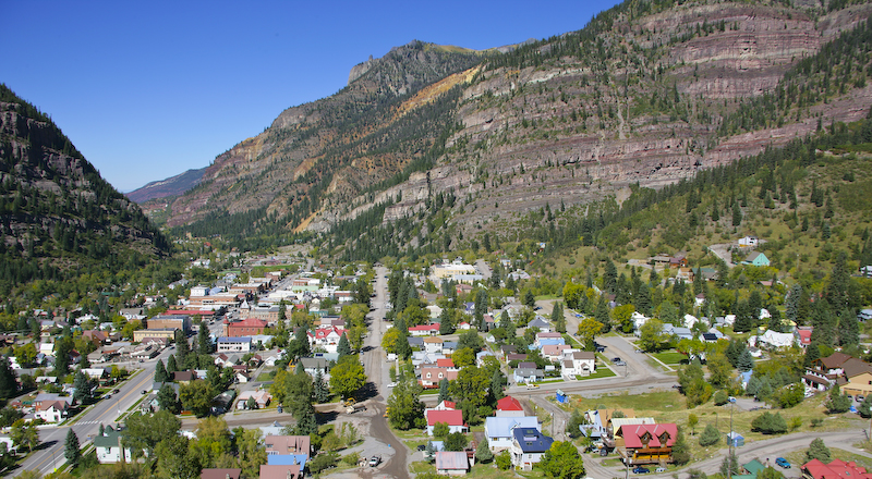 The hamlet of Ouray from the overlook on US 550.