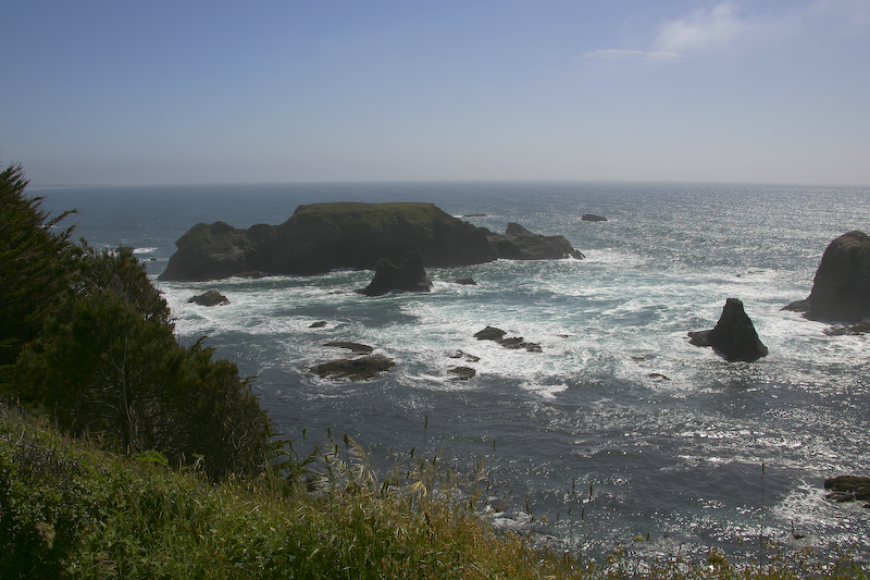 Once highway 1 came out of the hills and hit the coast, the weather cleared up quite a bit. This shot was taken from the junction of 1 and the coast, north of Fort Bragg. Note the nice house on the left of the photo above.