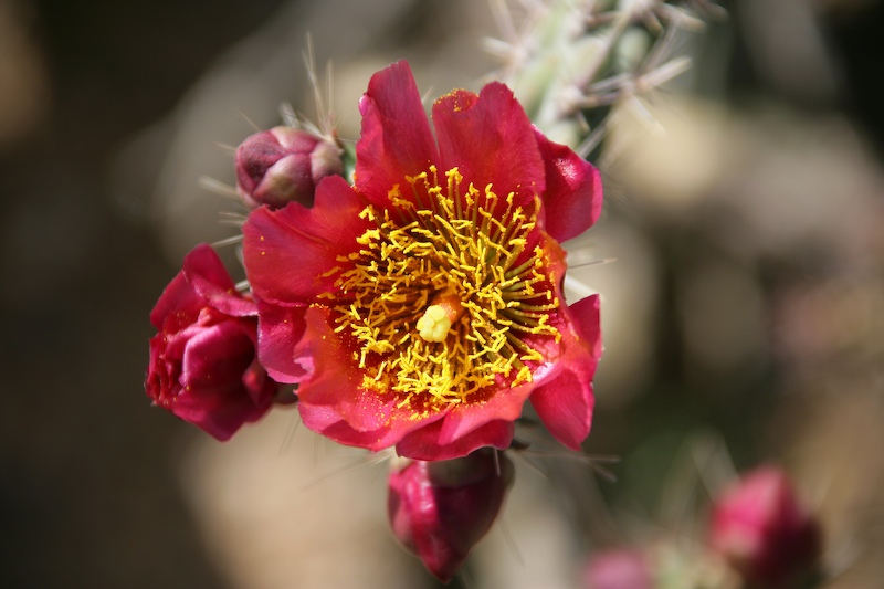 Here is a staghorn cholla in bloom. Note the fine structure of the flower.