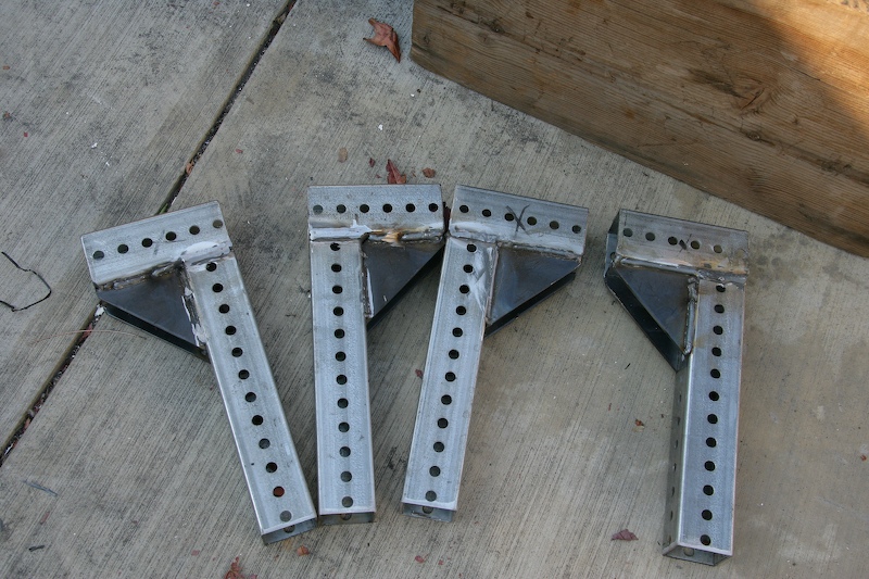 Corner assembly in place to demonstrate how it will work. The vertical tubing will accept the lifting leg with jack assembly.