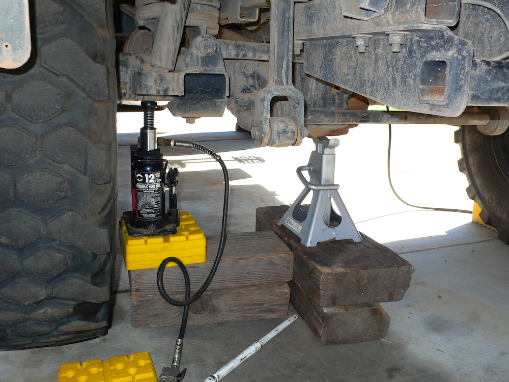 First order of the day is to get the tire/wheel off the truck. Safety is critical and you should always use a jack stand in addition to the jack, in case the jack fails.