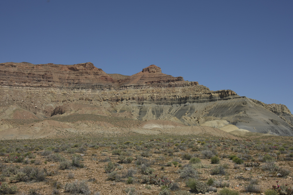 The finest in back country accommodations. These two small containers were welded together and then a hole was cut in the wall between them. They have a stove (good for winter) but no windows (no good for summer). This shack sits at the top of a canyon that has a steep slope to the bottom below and is the entrance to Grand Bench. Grand Bench is a 10 mile long finger mesa that runs southward into Glen Canyon.