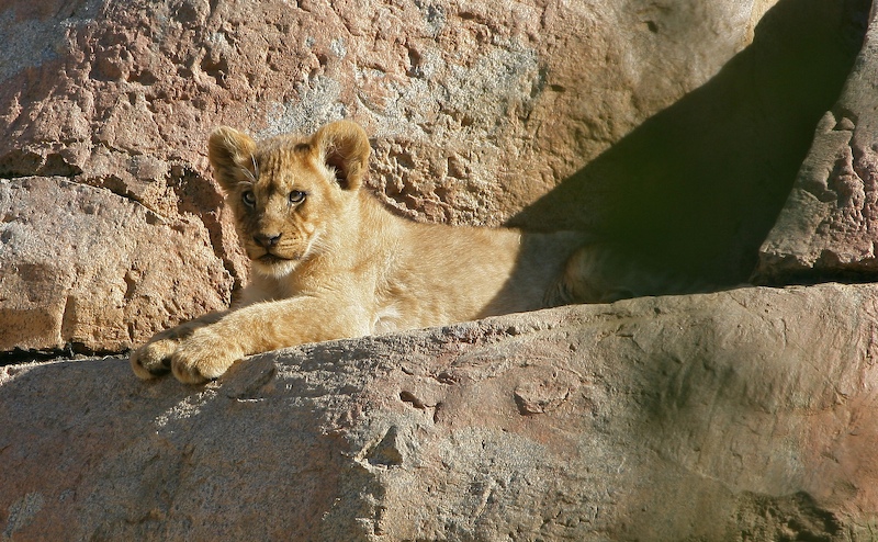 The Park has a big pride of lions; one male, 2 females and a set of new cubs only 13 weeks old. Here, Leo baby sits several of the cubs.