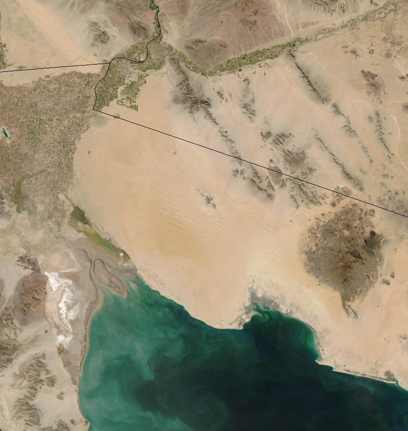 In Figure 2, the large dunes are evident and can be seen as forming a set that roughly parallel the coast to the south. The first destination was the east side of the Los Pinacates region which is the dark brown area at the right of Figure 2. We would end up at Guadalupe Canyon which is the northern-most large canyon area on the mountain front on the left of Figure 2.