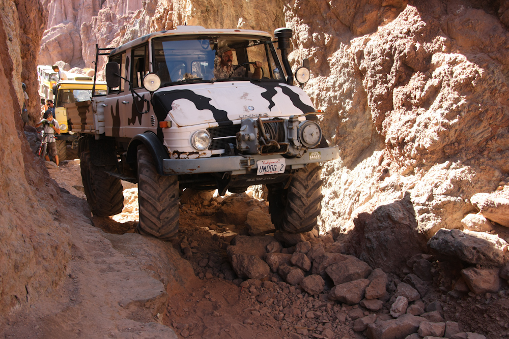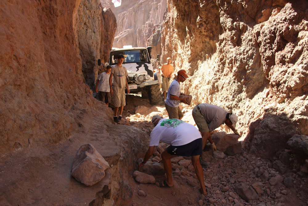 The narrowest part of the canyon was very rough; rough enough to require moving rocks to be able to get the team through the obstacle. Note the size of the lip on the left of the photo above.