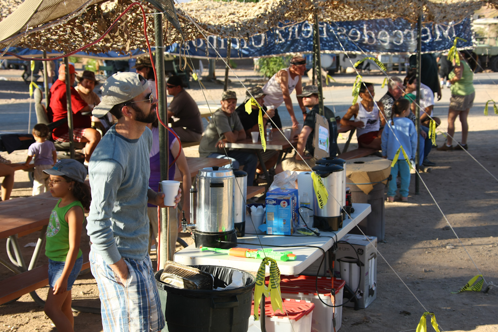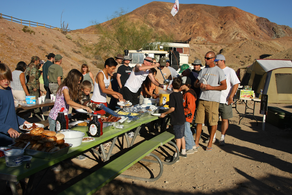 The Calico campground works out pretty well since we had power and water close to our mess hall. We were able to move tables from individual camp sites to form a group eating area and cover them with a camo tarp to provide some shade from the burning desert sun.