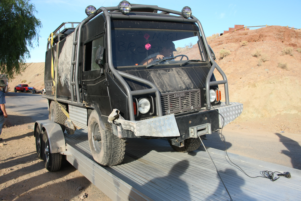 In the end, the winch on the truck was used to load himself onto a trailer for the trip home.